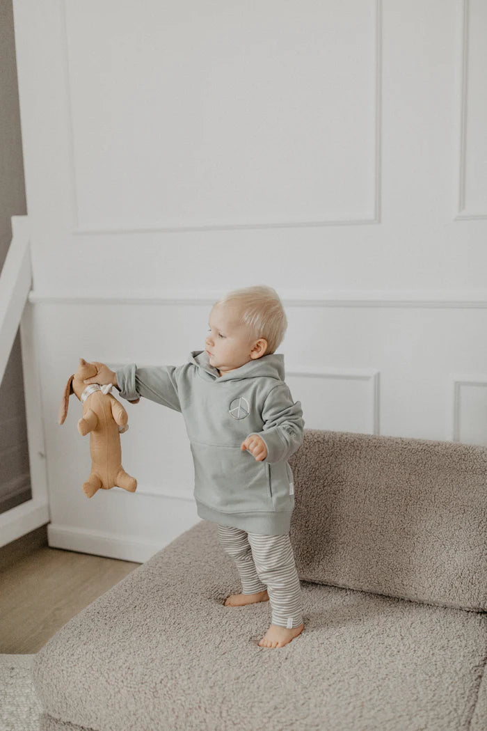 Material & Pflege: Bio-Baumwolle und Polyesterfüllung, nicht für die Waschmaschine geeignet.