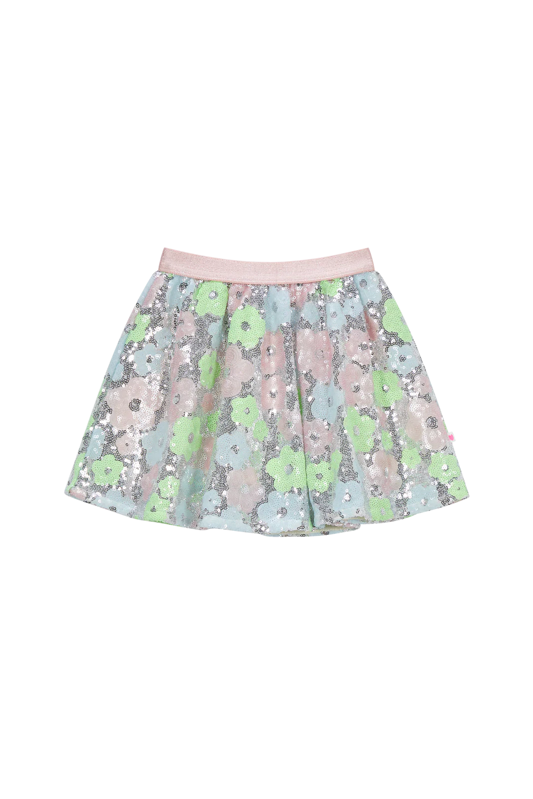 Dieser Rock fällt sofort mit seinem fröhlichen Blumenmuster und seinem schimmernden Finish ins Auge. Die sanften Pastellfarben erzeugen eine leichte und verspielte Atmosphäre, perfekt für Tage, an denen ein wenig mehr Glanz nötig ist. Ein echtes Feel-Good-Stück, das jedes Outfit aufhellt.