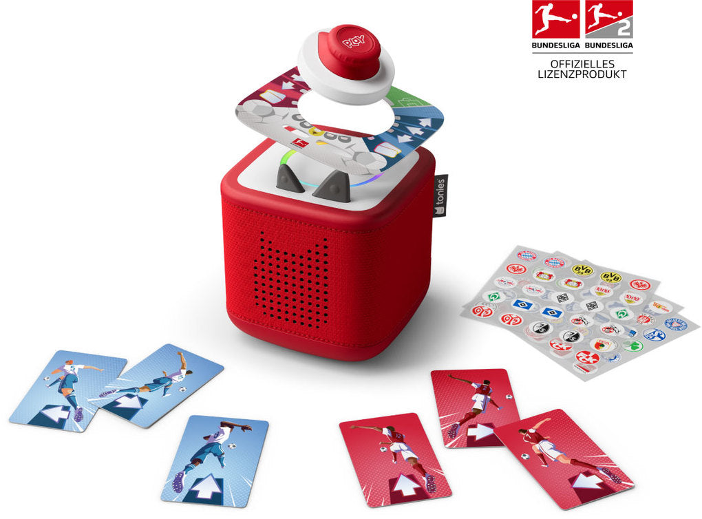 Tonies goes Bundesliga! Bei diesem rasanten Tonieplay Game für zwei Spieler kämpft ihr um den Ball, beweist taktisches Geschick und stürmt auf das Tor. Dank jubelnder Fans und Live-Kommentaren fühlt sich jedes Match an wie im echten Bundesliga-Stadion – und das direkt in deinem Kinderzimmer!