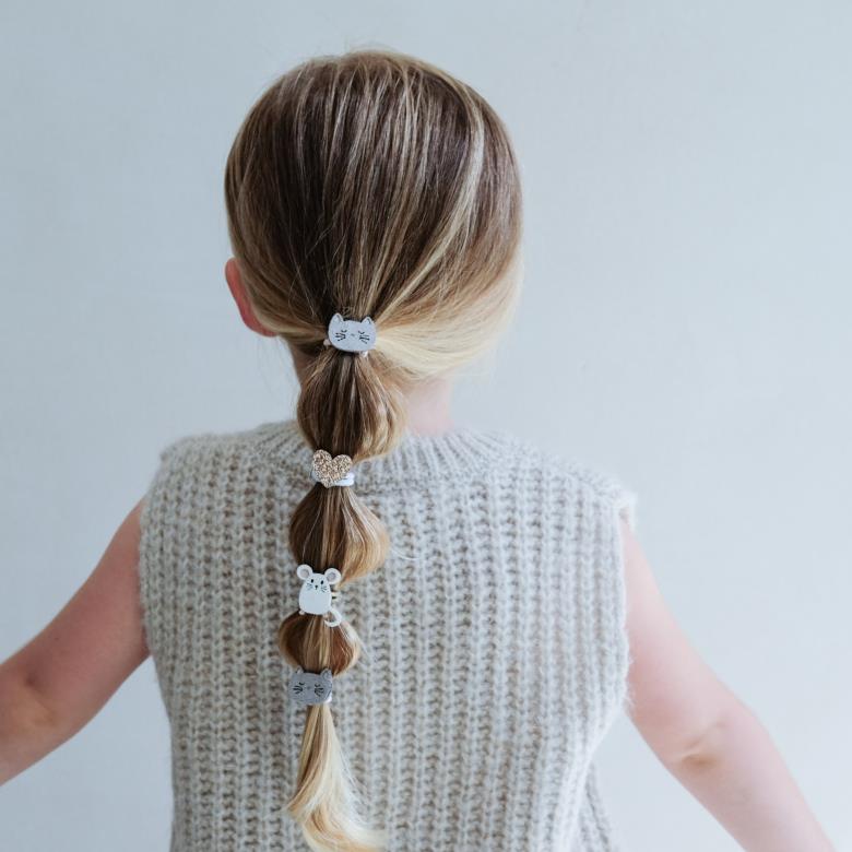 Begrüßen Sie unsere ach so süßen Katz-und-Maus-Mini-Ponys! Vier weiche kleine Miezekatzengesichter, zwei süße kleine Mäuse und zwei golden glitzernde Herzen - Mix & Match für alle möglichen entzückenden Styles!